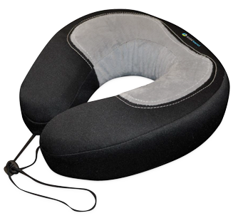 "Sans soutien, l’endormissement en transports s’effectue naturellement avec la nuque fléchie. Or la totalité du poids de la tête répartie sur un seul côté de la nuque est source de tensions musculaires importantes. Ce cale nuque prodigue un maintien réel de l’ensemble de la nuque et de la tête, afin que les muscles cervicaux se relâchent, et répartit la pression sur les articulations de manière harmonieuse. Le lien de serrage permet d’apporter un maintien uniforme enveloppant la mâchoire. "