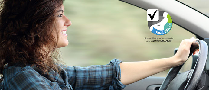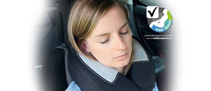 La gamme Kiné Travel® propose des réponses aux situations d'inconfort généralement constatées en voyage, qui impliquent le dos, l'assise et la nuque.