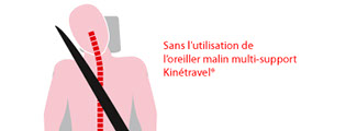 KinéTravel propose une gamme d’accessoires de voyage grand confort. Développée en partenariat avec un kinésithérapeute spécialiste du dos. 70 à 80% des français seront confrontés à des maux de dos. C'est le deuxième motif de consultation chez les médecins généralistes et la première cause d’invalidité chez les + de 45 ans. Le trajet en voiture est une cause fréquente de maux de dos, il peut les déclencher ou les aggraver, et également être à l’origine de douleurs dans des zones annexes : épaules, jambes et  bras. Voici les principales origines des traumatismes en voiture : posture prolongée, vibrations mécaniques, affaissement du corps, stress au volant qui génère de la tension, manque de soutien sous les coudes, déshydratation / climatisation intensive, siège, appuie tête et volants mal réglés / trop éloignés et pour les passagers : endormissement nuque fléchie.