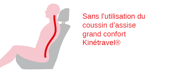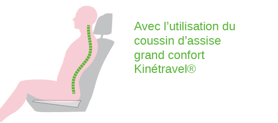 KinéTravel propose une gamme d’accessoires de voyage grand confort. Développée en partenariat avec un kinésithérapeute spécialiste du dos. 70 à 80% des français seront confrontés à des maux de dos. C'est le deuxième motif de consultation chez les médecins généralistes et la première cause d’invalidité chez les + de 45 ans. Le trajet en voiture est une cause fréquente de maux de dos, il peut les déclencher ou les aggraver, et également être à l’origine de douleurs dans des zones annexes : épaules, jambes et  bras. Voici les principales origines des traumatismes en voiture : posture prolongée, vibrations mécaniques, affaissement du corps, stress au volant qui génère de la tension, manque de soutien sous les coudes, déshydratation / climatisation intensive, siège, appuie tête et volants mal réglés / trop éloignés et pour les passagers : endormissement nuque fléchie.
